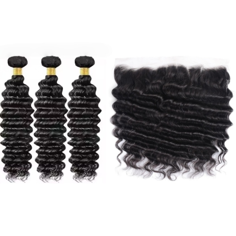 Burmese Hair 3 Bundles With Frontal Deep Wave Human Virgin Hair